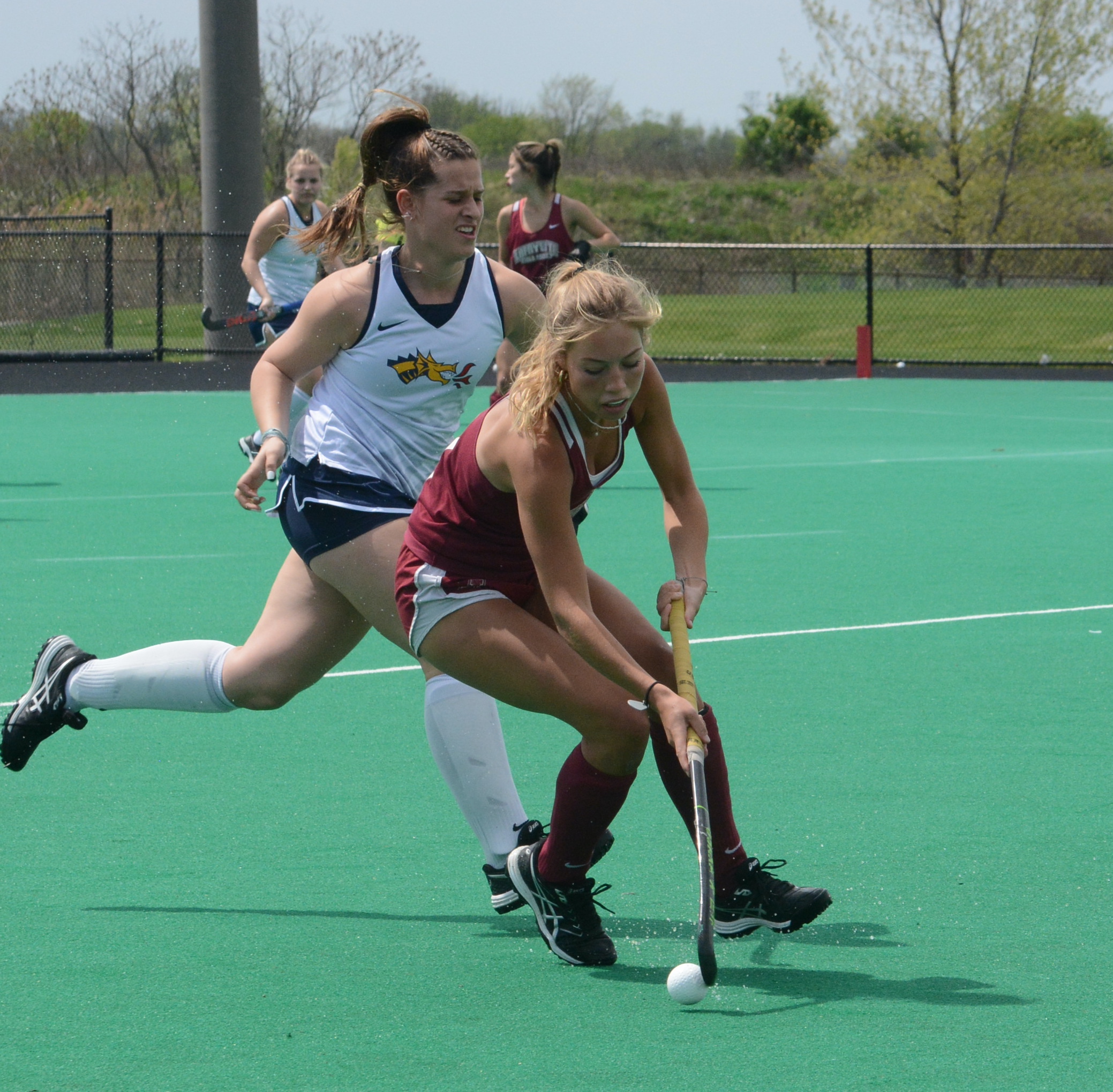 Laine Delmotte was back from Barbados after playing in the under 21 Pan Am games for Canada and fit right into play. The spring has turned into a valuable experience for all. There were some bumps and bruises along the way but I expect that will be all gone by August. Catalina Rubel was an active threat all afternoon. Carley Kreytak was in the face of Drexel attackers. Aimee Hoefnagel and Josephine van Wijk showed increasing skill and leadership. Alex Darrah will be a real force this fall and Mackenzie Hall showed her gritty determination all spring. Alex Conway showed growing maturity.