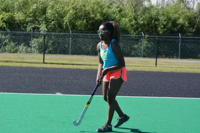 Lola Dada feeds the freshmen goalkeeper shots
